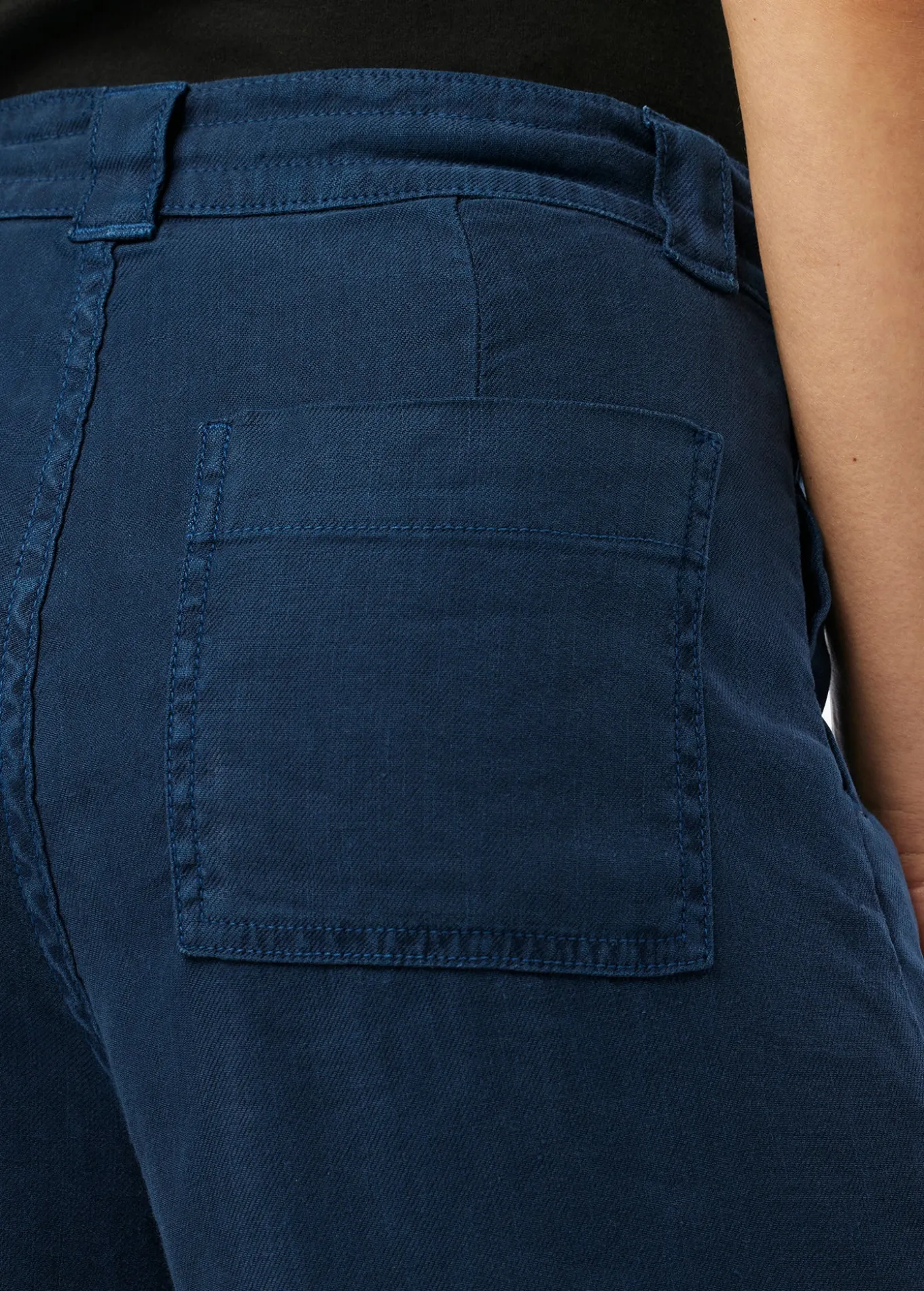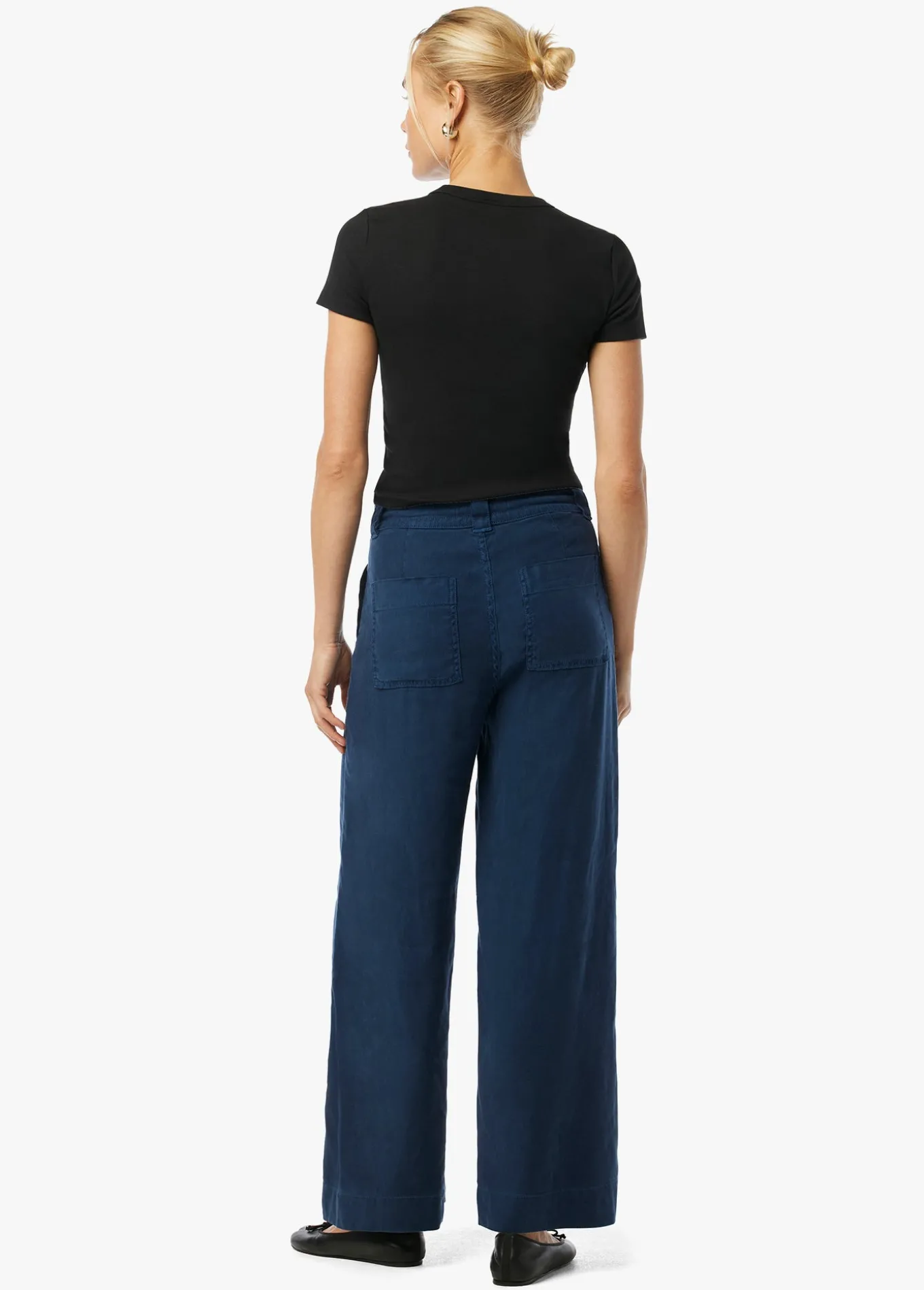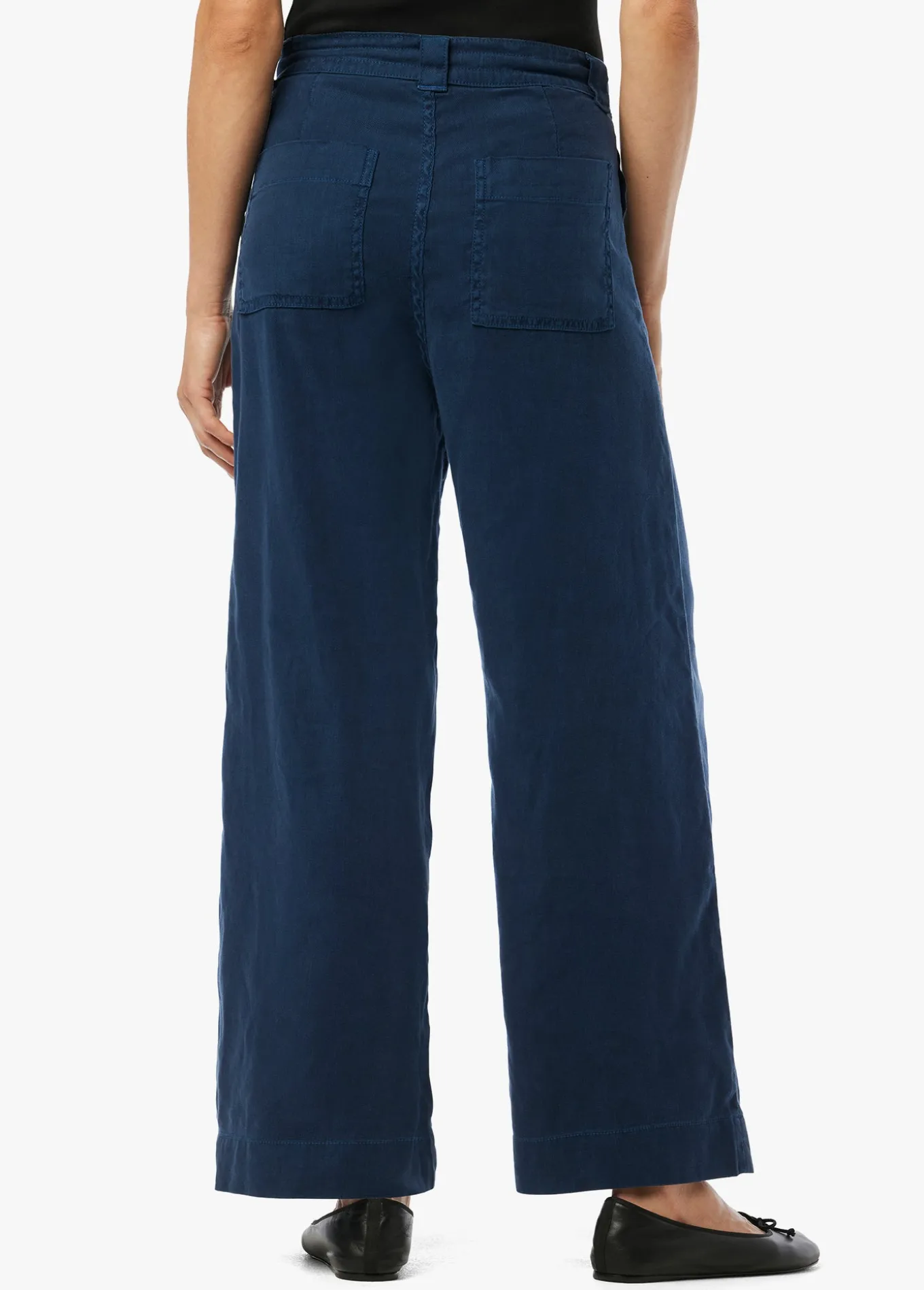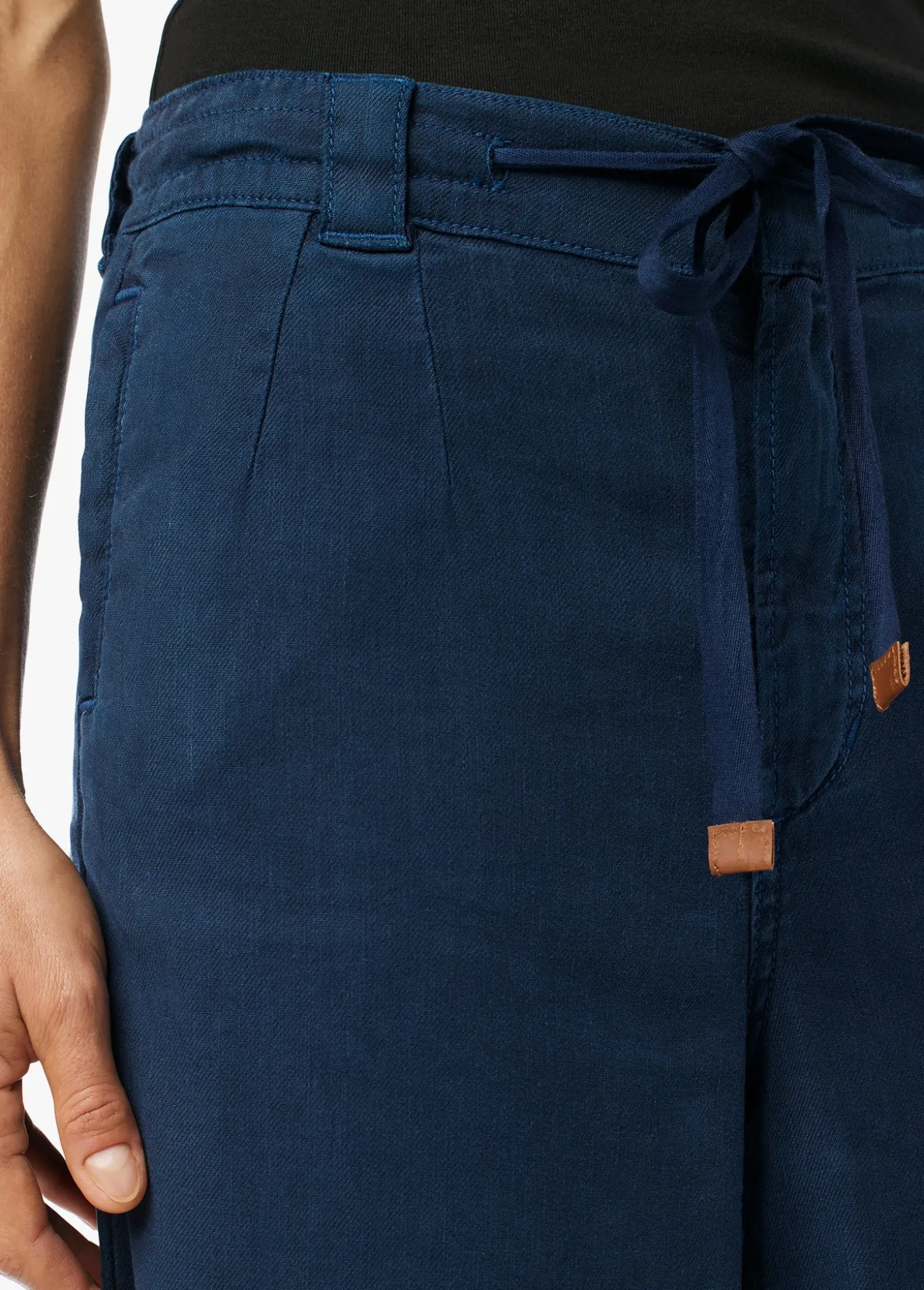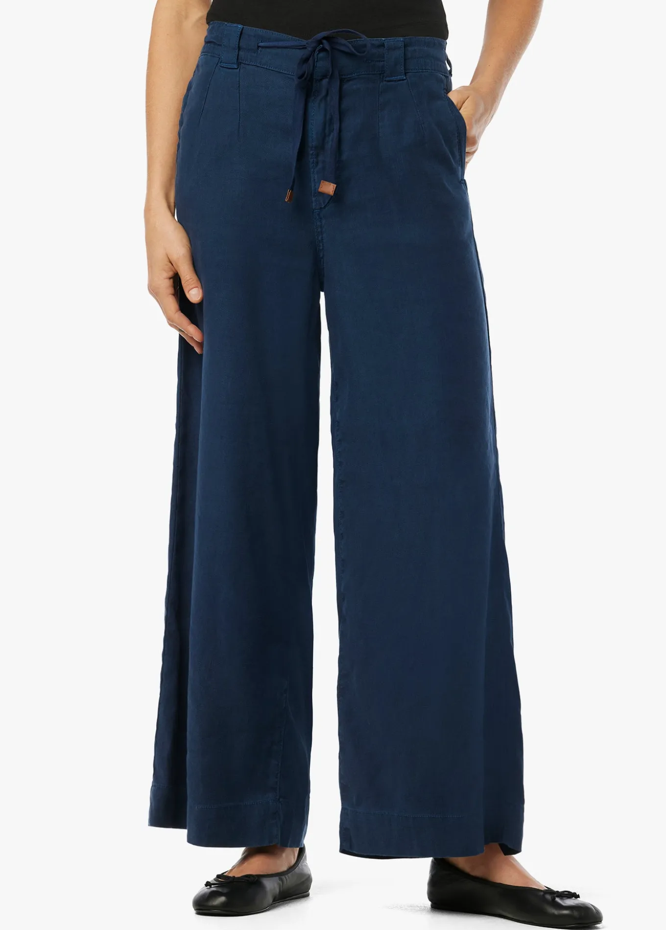 The ankle-length Addison Pant is ready for all your favorite footwear. The pallazo cut is styled with a wide leg, drawcord waist and seam pockets. The lightweight fabric has just enough stretch making it the perfect spring wardrobe addition in dark Pageant Blue. Rise: 11.5;Inseam: 27;55% Linen, 44% Lyocell, 1% Elastane
