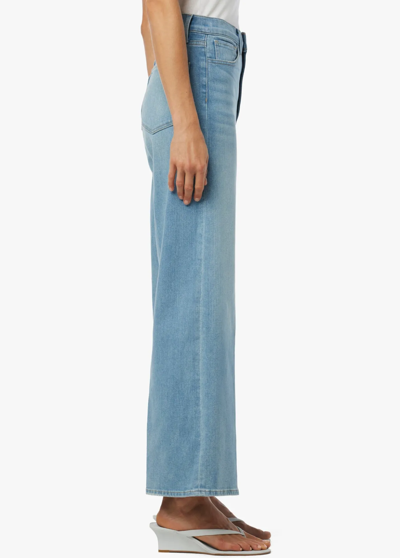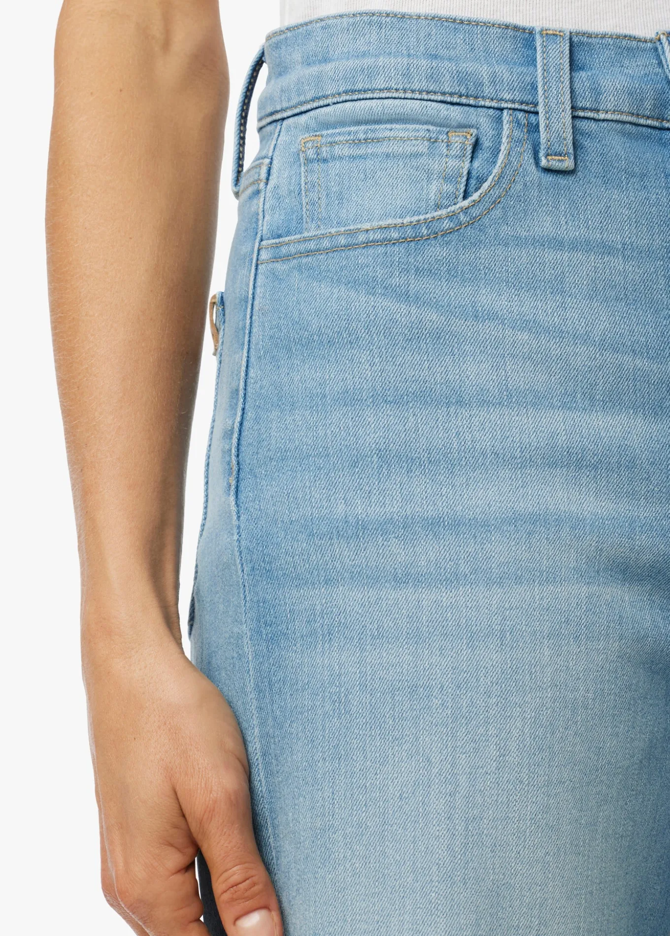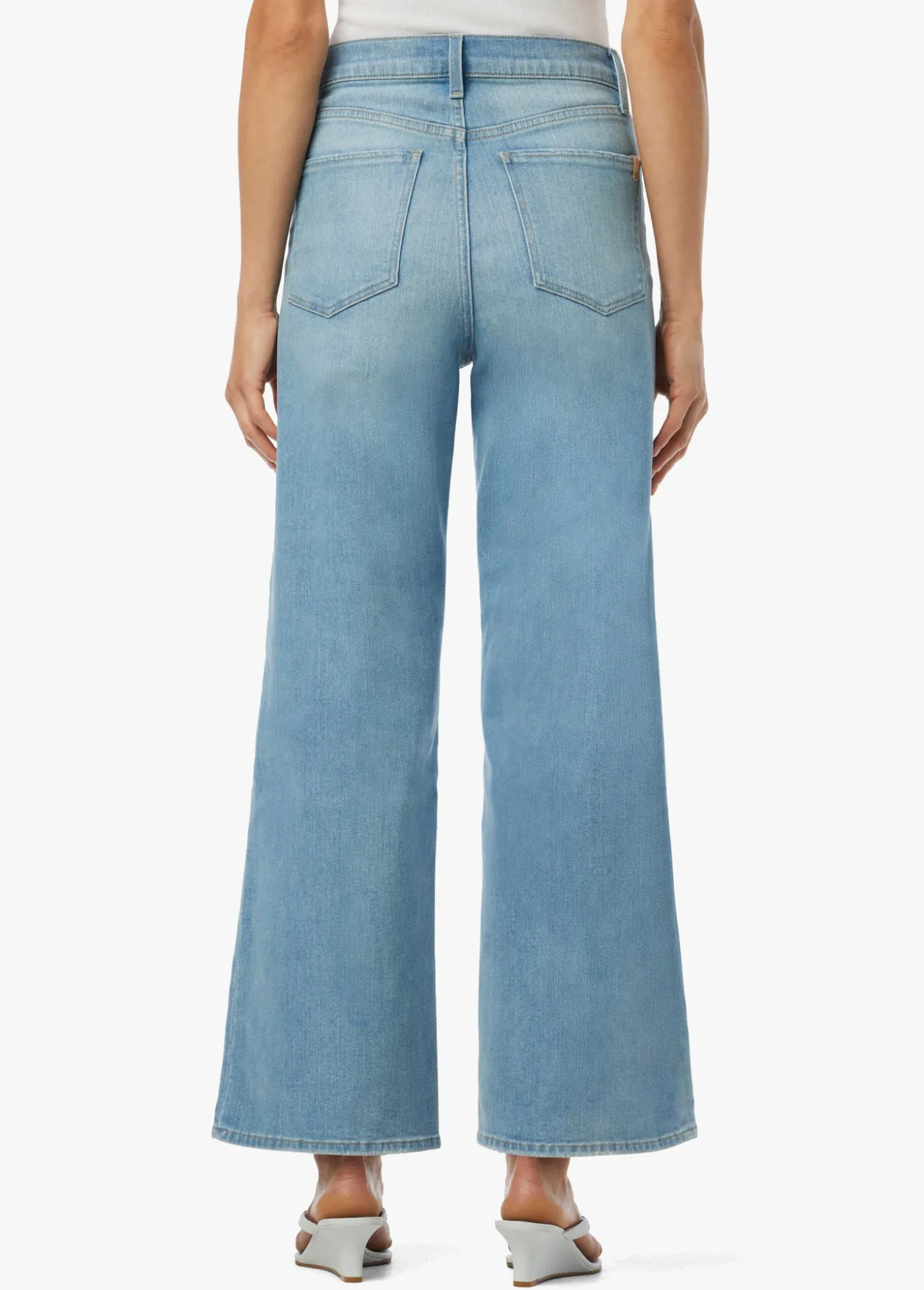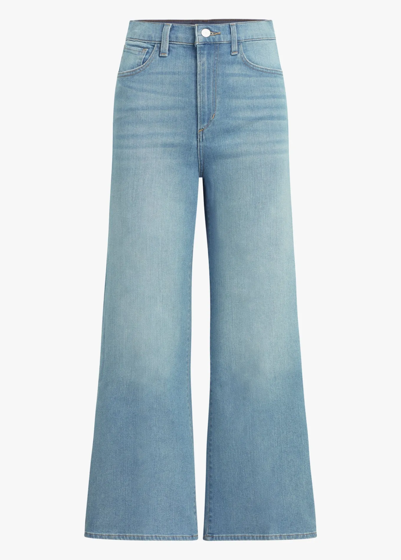 The high-rise, wide leg Mia jean is a light wash that has the texture of authentic vintage denim but with the comfort and ease of stretch. The elevated styling of these jeans make them easy to dress up or dress down. The denim kicks out at the ankles, giving an elongated sleek look. Rise: 11.5;Inseam: 28;79% Cotton , 2