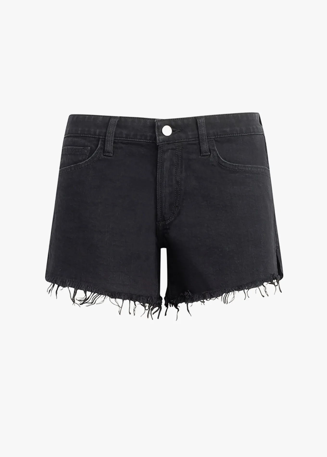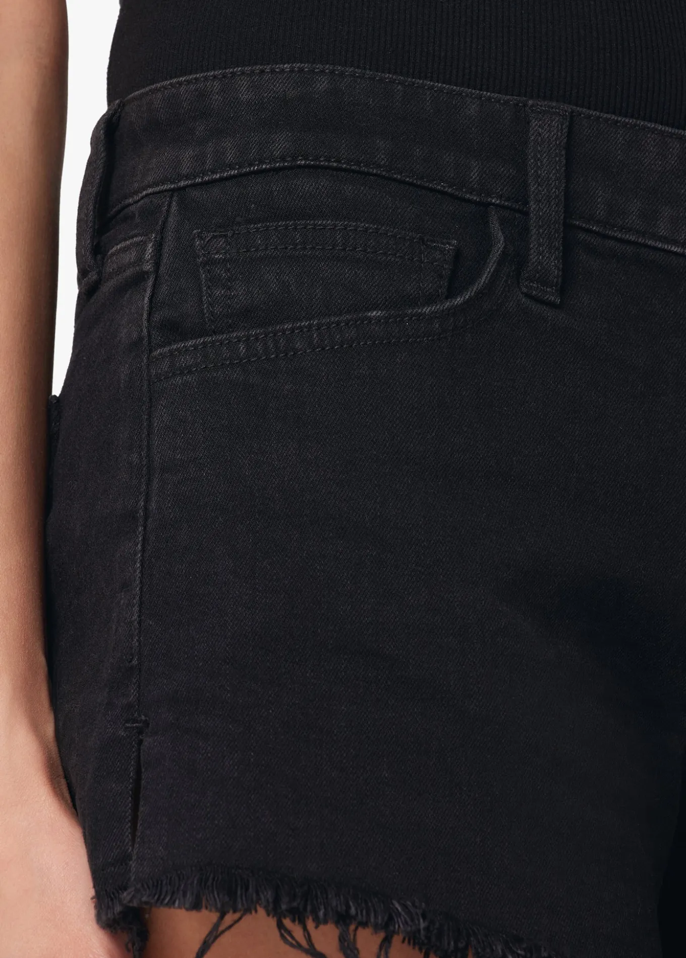 Our bestselling 4; Ozzie Short is a five-pocket cutoff style made from stretch denim and roughed up with stringy frayed hems. The black Vintage Stretch fabric with side slit makes this a warm weather favorite.9 1/2; RISE4; INSEAM98% Cotton, 2% SpandexMODEL IS WEARING SIZE 26 9 1/2; front rise 13 3/4; back rise 22; leg