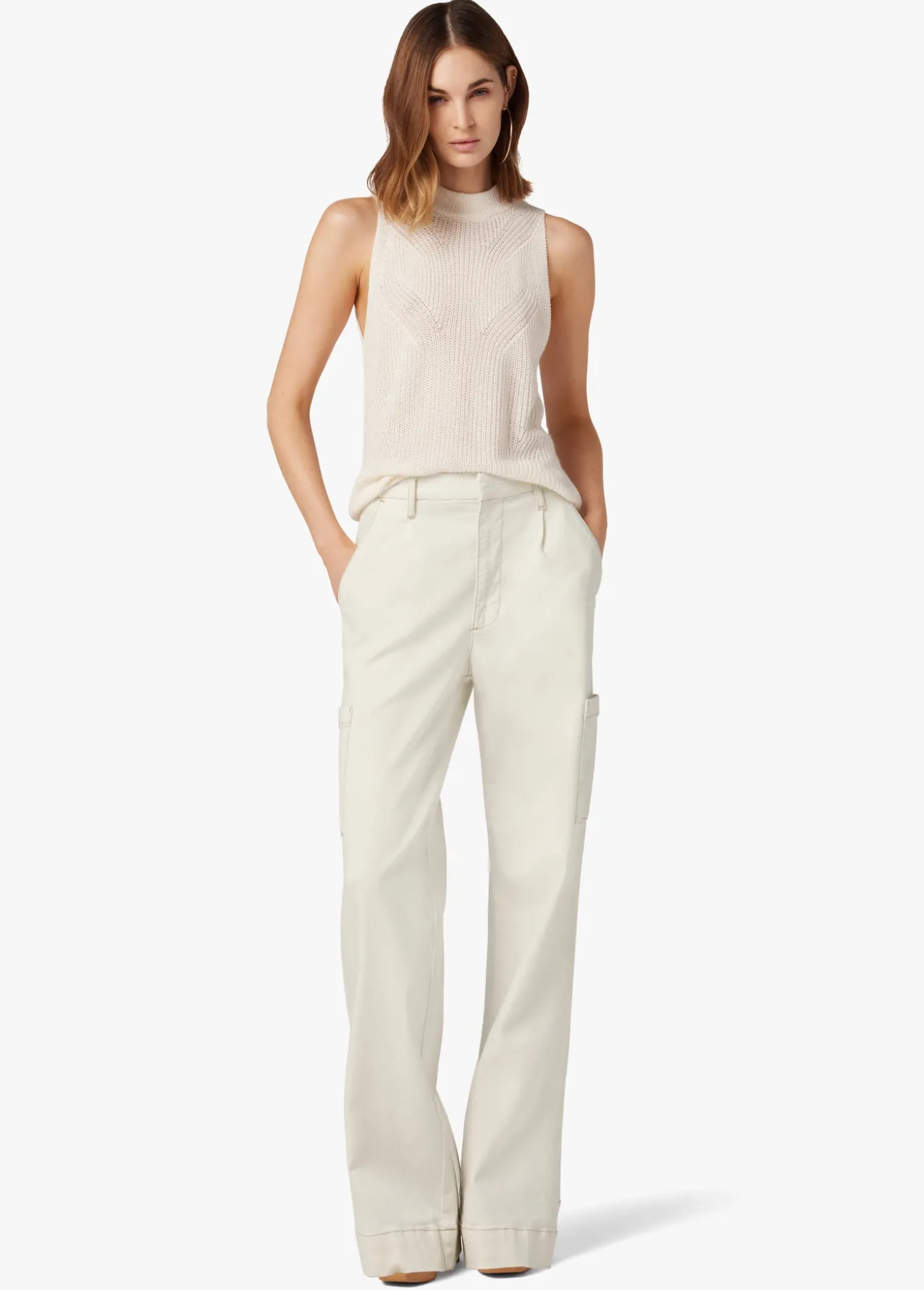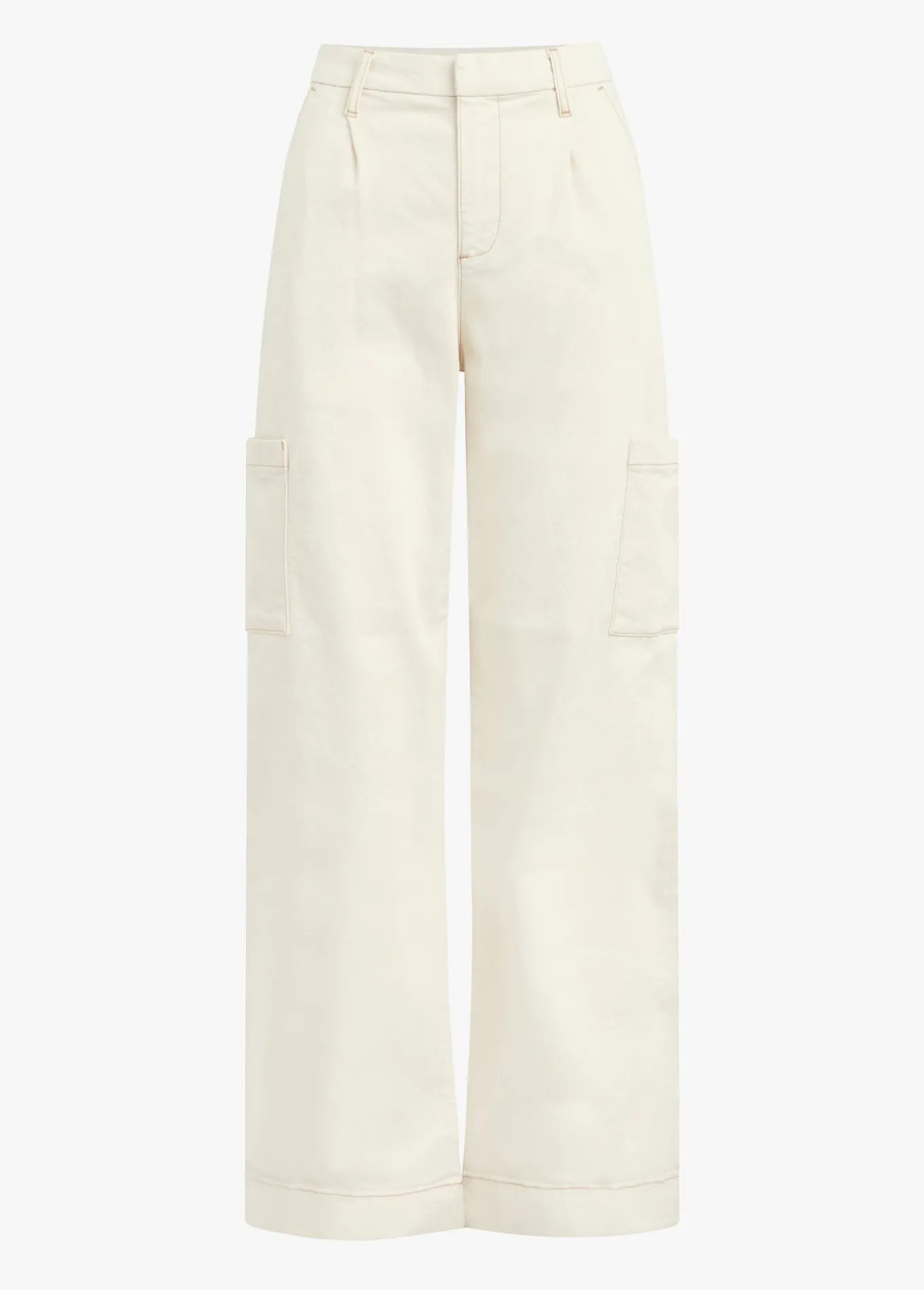 Classic cargos get a feminine revamp with The Petra. This effortlessly cool, wide leg pant has a high rise and wide hem with front pleats and trouser pockets. The natural shade is finished with a deep hem and cargo pockets.11 3/4; RISE33; INSEAM62% Cotton, 18% Rayon, 17% Polyester, 3% ElastaneMODEL IS WEARING SIZE 26 1