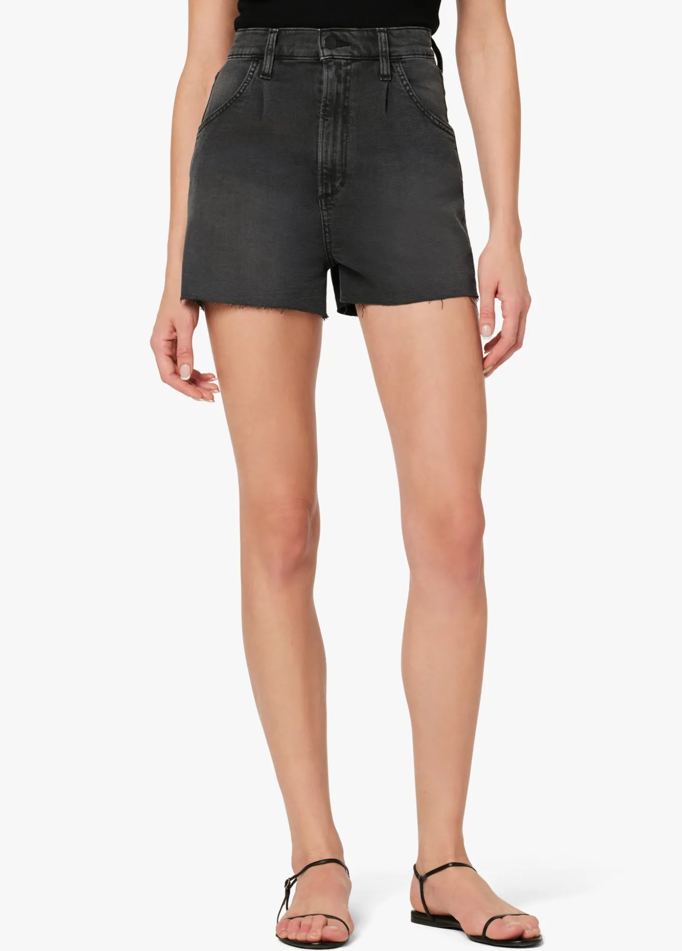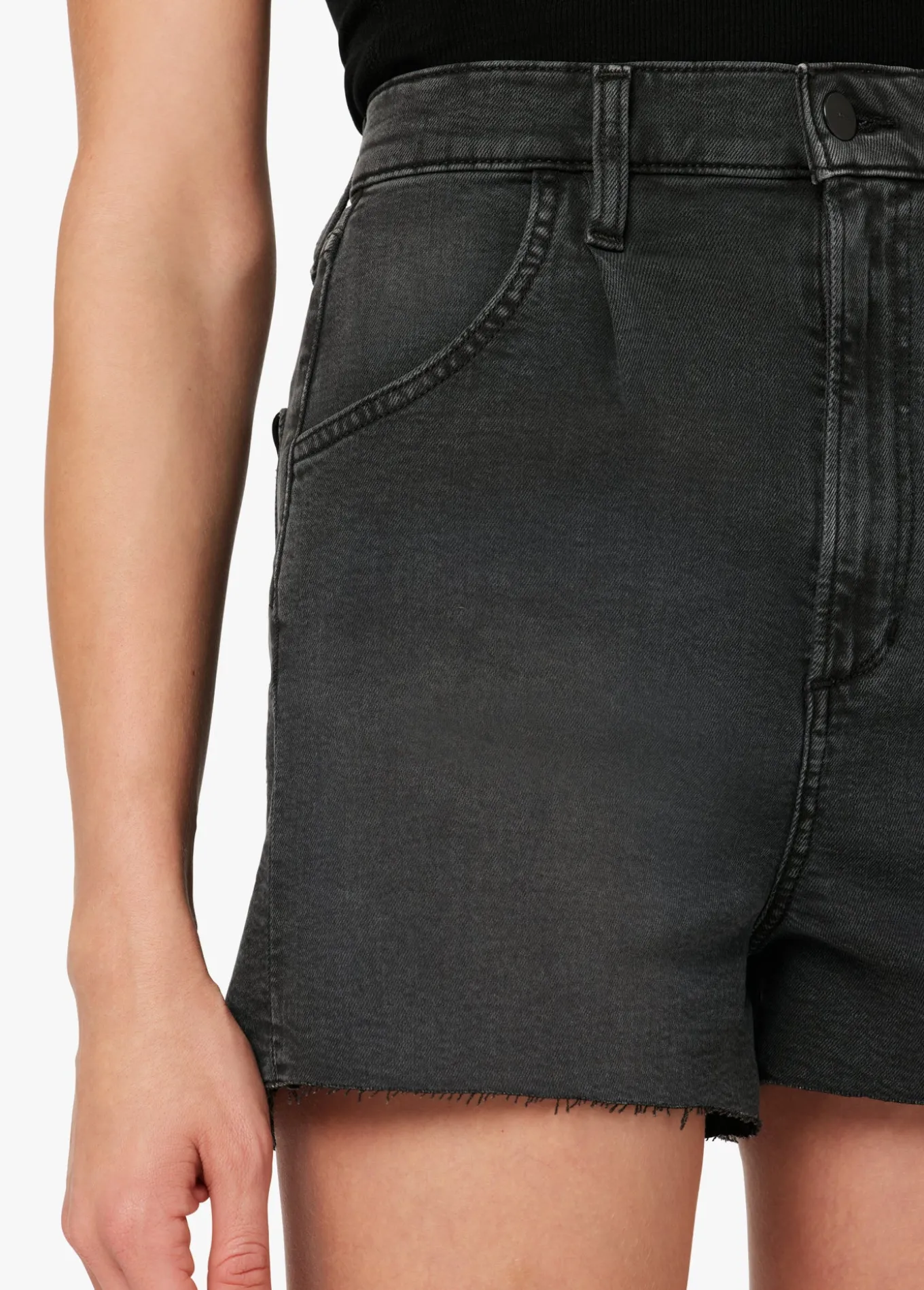 Be bold in the high-rise, Pleated Short in 'Black Cat'. In a washed black denim that sits high on your hips, these shorts are cut from our new Weightless fabrication that's super lightweight. Look cool and keep cool all at once. 12 3/4; RISE3; INSEAM50% Cotton, 42% Lyocell, 7% Recycled Polyester, 1% ElastaneMODEL IS WE