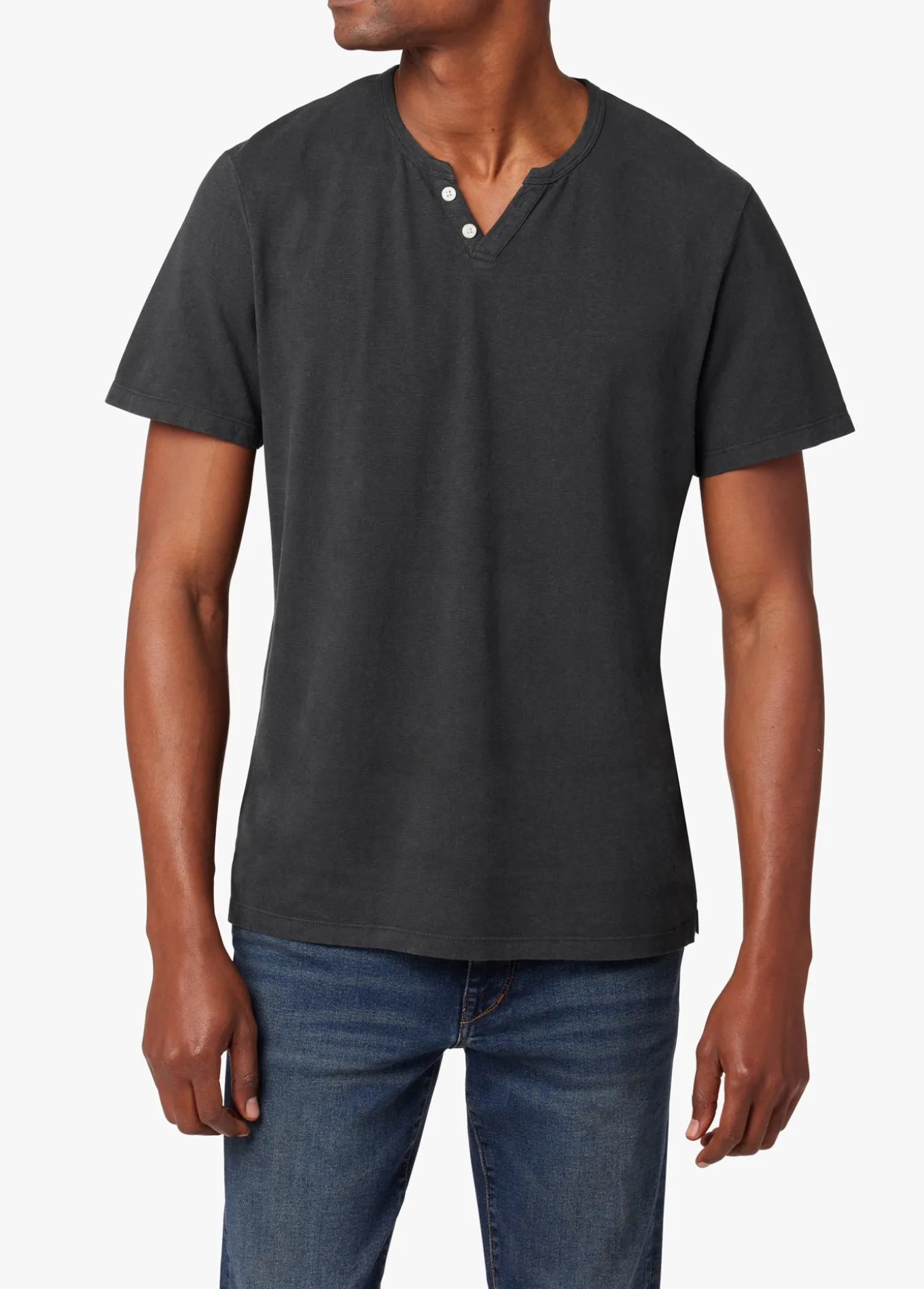The extra comfort of the Wintz Short Sleeve Henley comes from a hemp-cotton blend that gets softer with each wear and naturally provides sun protection. (Hemp is also gentler on the environment since it promotes sustainable farming.) This black tee is supremely comfortable and easy to wear in a slubby hemp-cotton blend