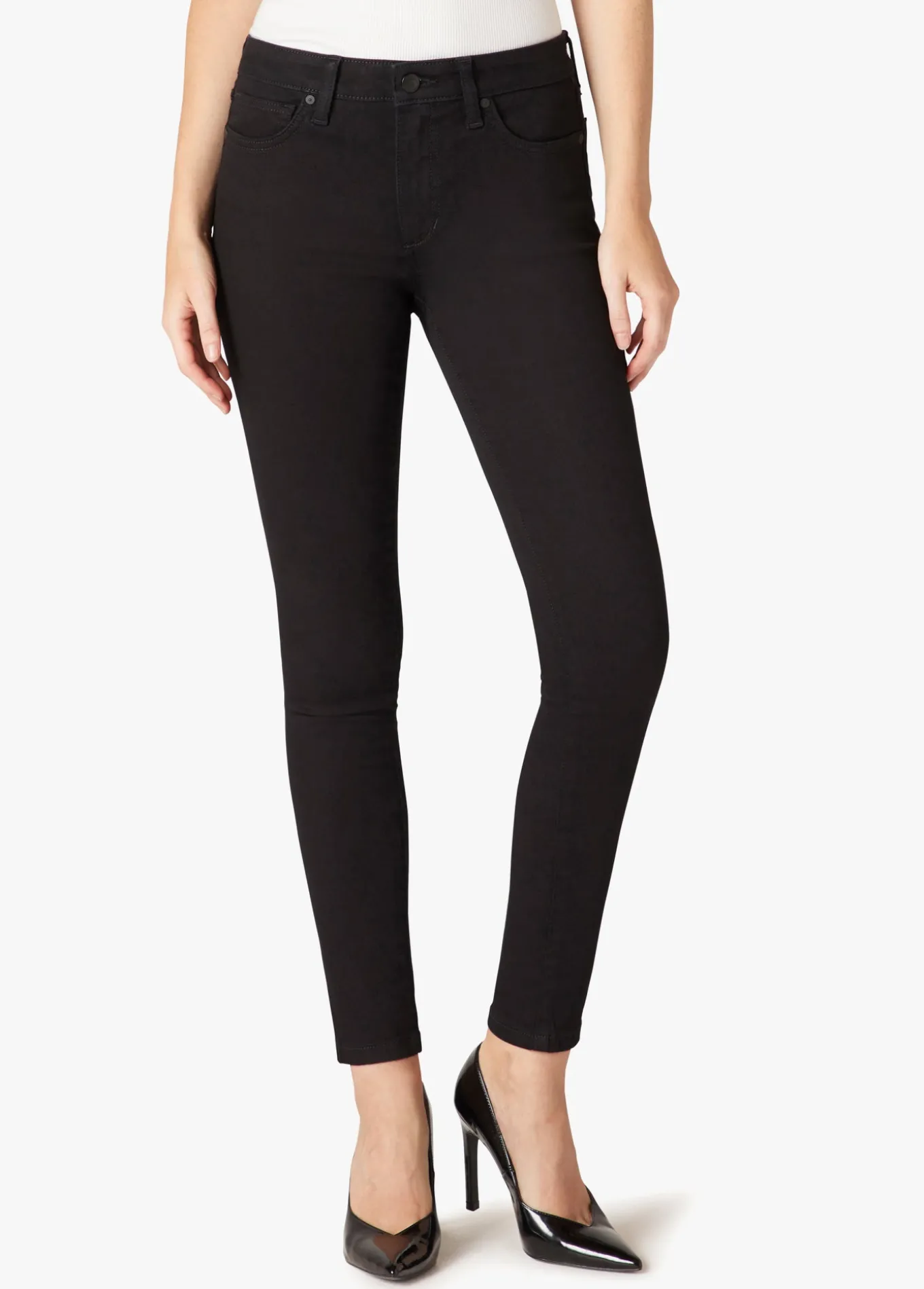 Cut from denim with shape-hugging stretch, these skinny jeans hit at the ankle and are designed especially for hourglass silhouettes. 65% Cotton, 23% Polyester, 10% Rayon, 2% SpandexMODEL IS WEARING SIZE 26