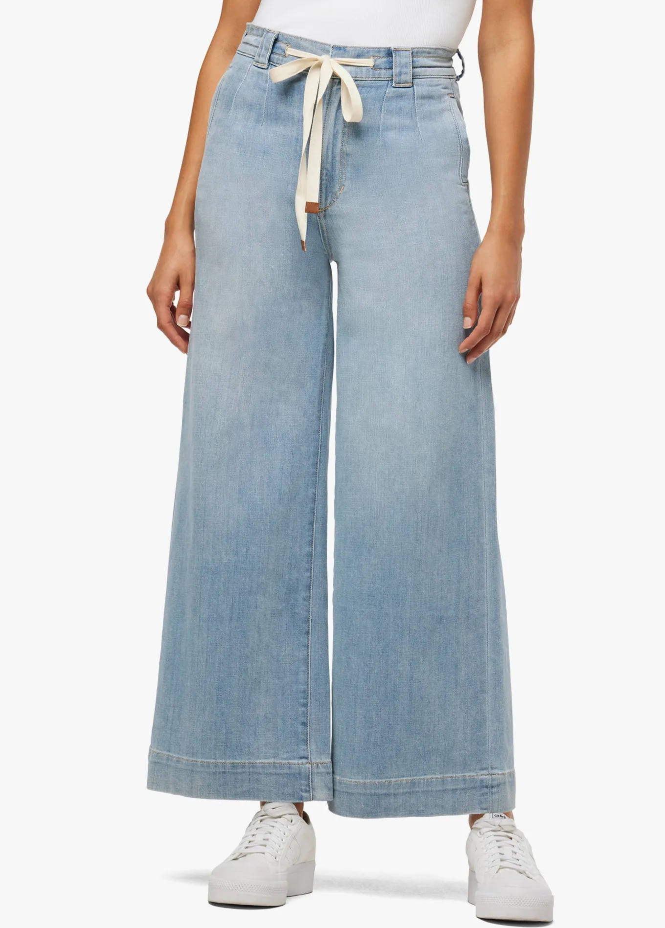 The ankle-length Addison Pant is ready for all your favorite footwear. The pallazo cut is styled with a wide leg, drawcord waist and seam pockets. The lightweight fabric has just enough stretch making it the perfect spring wardrobe addition in light blue Admiration. Rise: 11.75;Inseam: 27;88% Cotton 12% PolyesterModel