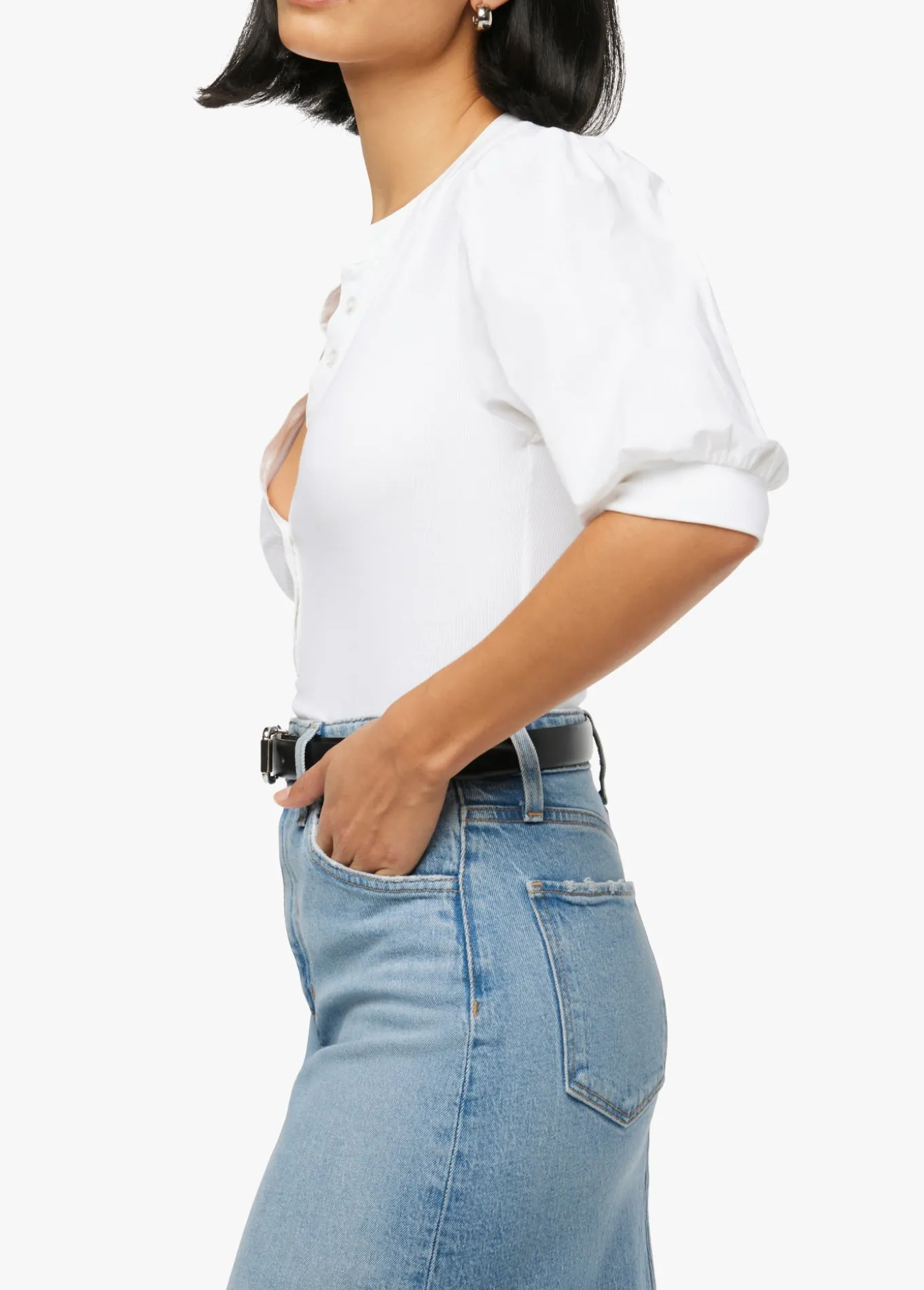 A feminine flare on the classic polo. The Lena is done in a soft knit rib with contrasting cotton poplin sleeves and petite front buttons. Dress up everyday denim with The Lena or pair it with your favorite skirt for a chic spring look. 45% Cotton, 45% Rayon, 10% ElastaneModel is wearing size Small